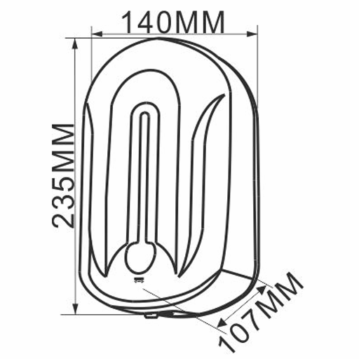 Rozměry dávkovače: Výška 235 mm, šířka 140 mm, hloubka 107 mm