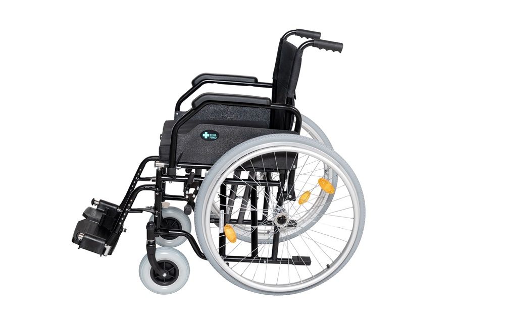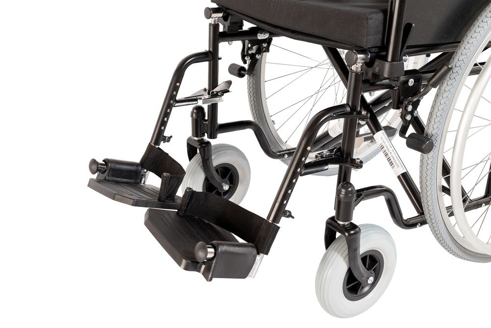 - Výklopné a odnímatelné opěrky nohou s nastavitelnou výškou – přizpůsobí se individuálním potřebám uživatele.