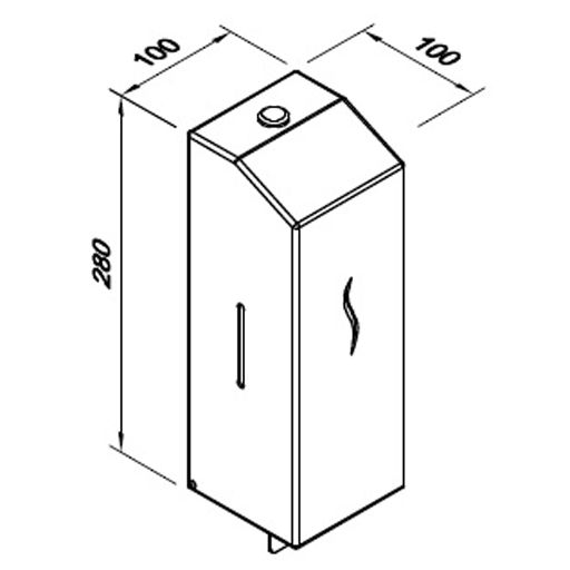 Rozměry dávkovače: Výška 280 mm, šířka 100 mm, hloubka 100 mm