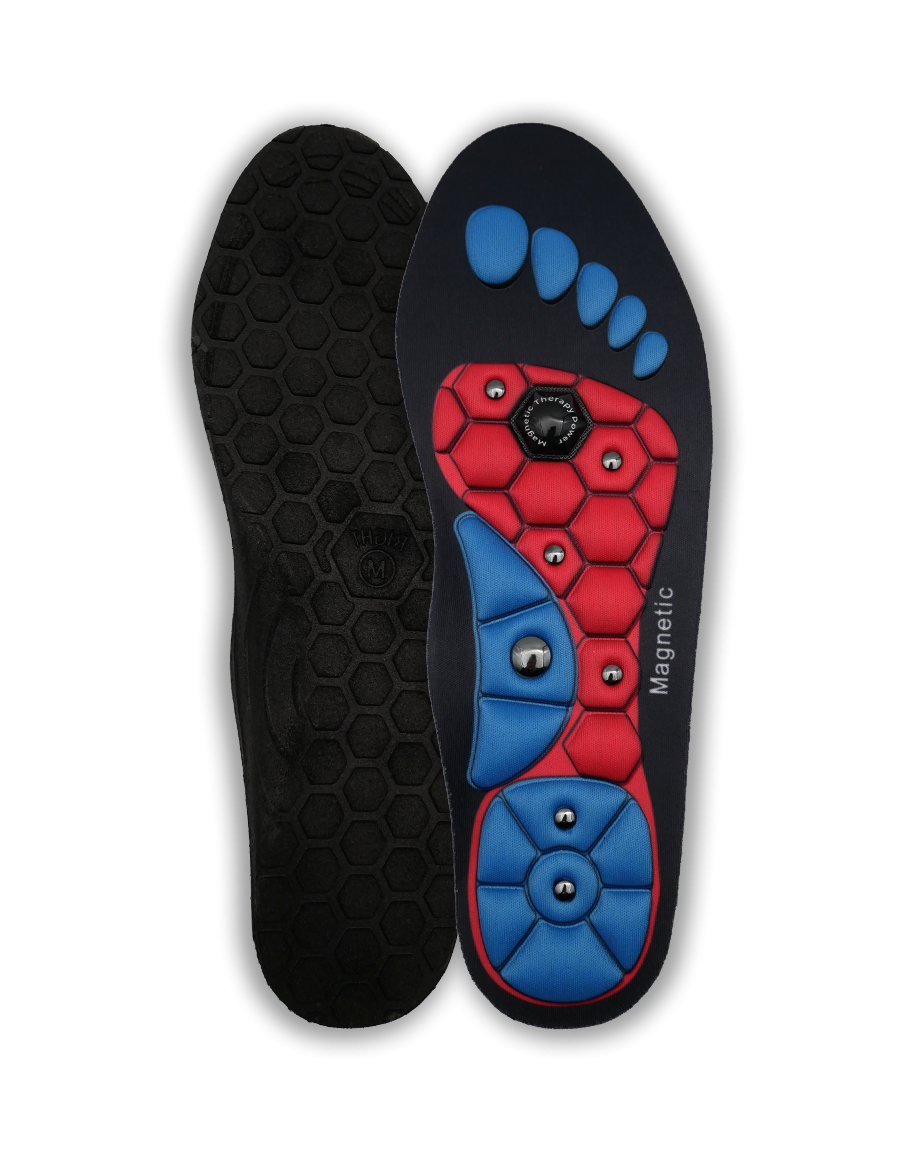 Magnetické vložky do bot jsou ergonomicky tvarované vložky, které spojují účinky akupresury a magnetoterapie, čímž napomáhají lepšímu prokrvení, úlevě od únavy a zmírnění bolestí nohou.