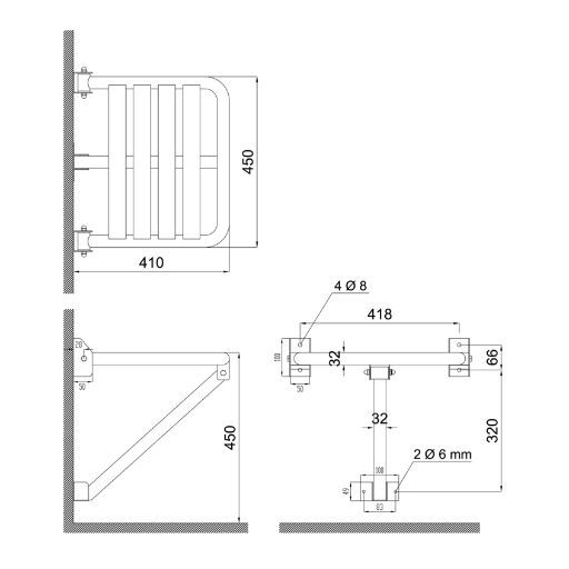 Skládací sprchové sedátko s podpěrami, matná nerezavějící ocel